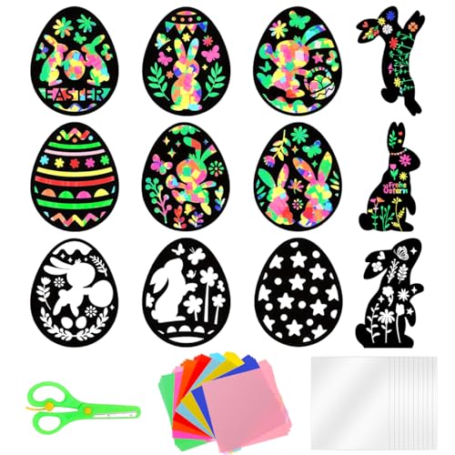 MQIAN Påskpyssel barn, 12 stycken pysselset papper påsk fönsterbilder, presenter barn för hantverk kreativ gör-det-själv påskdekoration