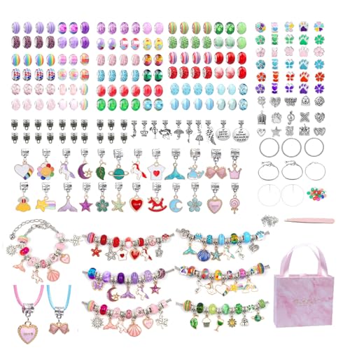 SHJOEE 288 stycken charm armband tillverkningskit barn armband set gör-det-själv hantverk för flickor kvinnor smyckestillverkning-set 5–13 år presenter till födelsedag påsk jul