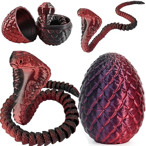 Joycabin 3D-tryckt ormleksak, påsk, 3D-tryckt drakägg, ormägg, påskkobra, 3D-tryckta djur leksaker för barn, presenter, skrivbord, heminredning (svart röd)