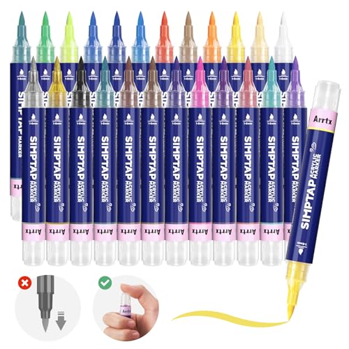 Arrtx Top Valve Action Acrylic Marker Pen, 24 färger Simptap akrylfärgpennor, extra penselspets, vattenbaserade färgmarkörer för sten, glas, påskägg och tyg målning-konst och hantverk för vuxna