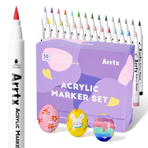 Arrtx Akrylfärgpennor för stenmålning, 30A färger premium graffiti-tillbehör, akrylfärgpennor för sten, hantverk gör-det-själv, påskägg, trä, glas med mera