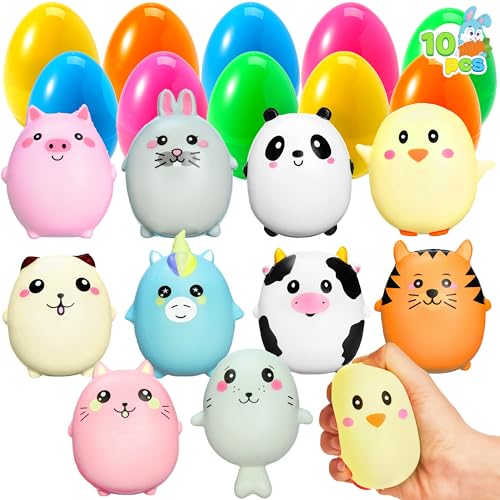 JOYIN 10 Jumbo, påskägg, fyllda med söta djursquishy-leksaker för påskäggsjakt, påskkorg, fyllning/fyllning, godis, festfavorit,