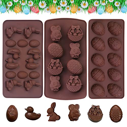 3 stycken påsk silikon chokladformer, chokladform påskhare påskägg, kaninform kaka chokladform set för choklad godis chokladkaka bakformar (B)