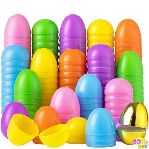 JOYIN Påskägg, inkluderar 1 gyllene ägg för att fylla specifikt godis, festgåva med påsktema, påskäggsjakt, korgfyllning, klassrumspris, tillbehör, 5,8 cm, 60 stycken