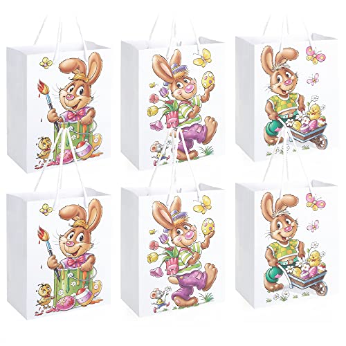 COM-FOUR® 6x påskpåse med motiv - papperspåse för fyllning - påskpåse för presenter och påskägg - presentpåse i papper med bärsnöre i påskdesign (06 stycken - medium - kaniner)