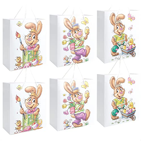 COM-FOUR® 6x påskpåse med motiv - papperspåse för fyllning - påskpåse för presenter och påskägg - presentpåse i papper med bärsnöre i påskdesign (06 stycken - stora - kaniner)