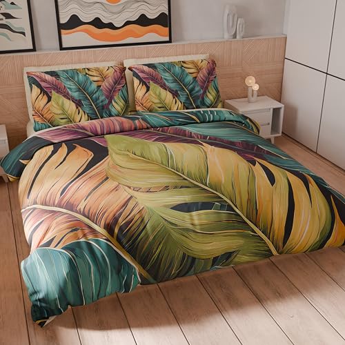 Dreamzie Påslakan 200x200 cm med 2 örngott 80x80 cm, Djungelmönster, 200x200 Bäddset med dragkedja, Dubbelsänglinne, Oeko TEX