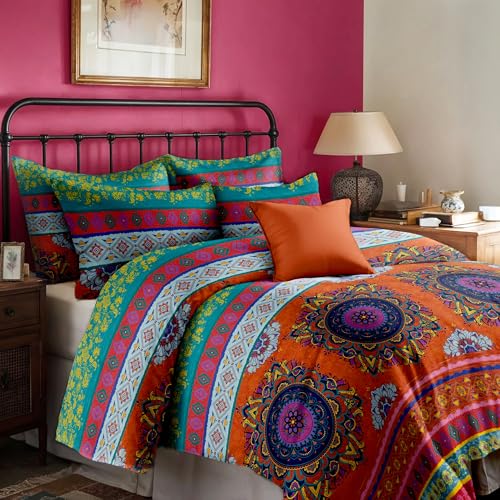 Dreamzie Påslakan 200x200 cm med 2 örngott 80x80 cm, indiskt mandalamönster, 200x200 Bäddset med dragkedja, Dubbelsänglinne, Oeko TEX