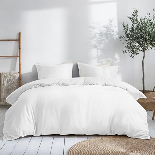 Dreamzie Påslakan 200x200 cm och 2 örngott 80x80 cm - Vit - Bomull Satin Bäddset - 3 delar - Certifierad kemikaliefri (Oeko TEX)