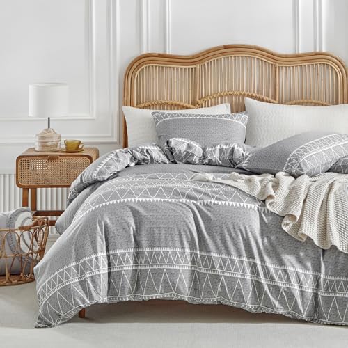 Tokokimo Dubbelt påslakan set 240 x 220 cm 100% mikrofiber bohemisk stil, mjukt och skrynkelfritt påslakan, 1 påslakan 2 örngott 50 x 80 grå