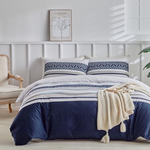 Tokokimo Dubbelt påslakan set 240 x 220 cm 100% mikrofiber bohemisk stil, mjukt och skrynkelfritt påslakan, 1 påslakan 2 örngott 50 x 80 blå randig