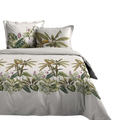 Lovely Casa - Antillerna påslakan 240 x 220 cm och 2 örngott 63 x 63 cm - 100% bomull, 57 trådar, Oeko-Tex certifierad, exotisk, grön, naturlig, palm