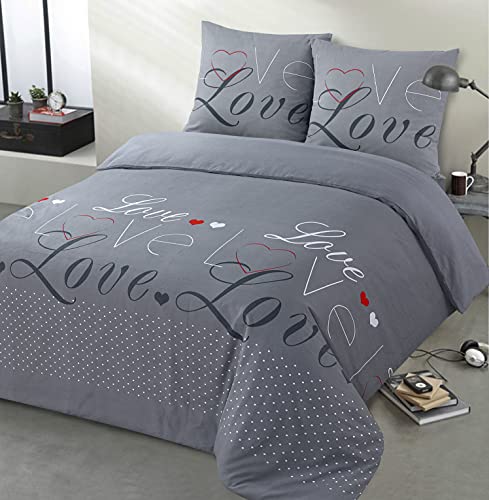 Vision - Love Grey Flanell-påslakan - påslakan 240 x 220 cm med 2 matchande örngott 65 x 65 cm - 100 % bomull