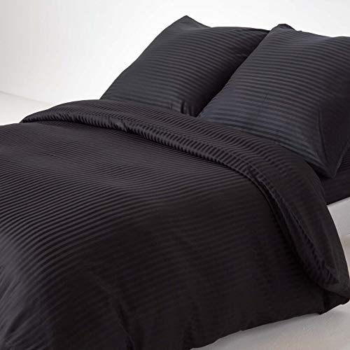 HOMESCAPES Sängkläder i egyptisk bomullssatin, påslakan 240 x 220 cm och 2 örngott 80 x 80 cm, percale 330 trådar färg svart
