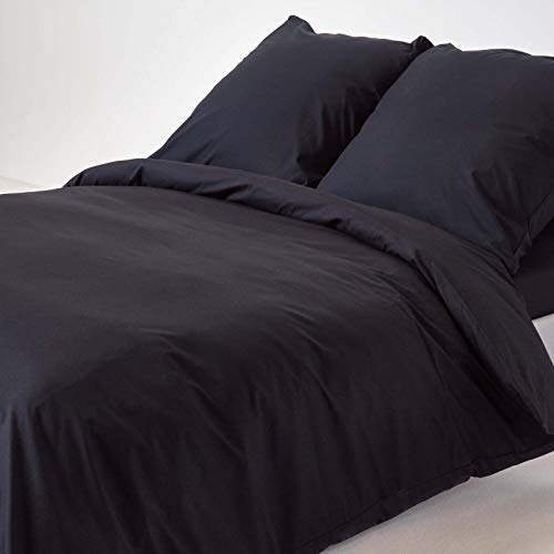 Homescapes Sängkläder i 3 delar, påslakan på 240 x 220 cm med örngott på 80 x 80 cm, svart, av 100 % ren egyptisk bomull, trådtäthet på 200, perkaltyg