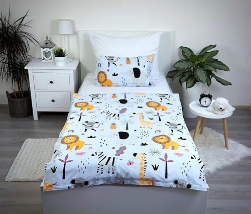 Theonoi Barnsängkläder småbarn sängkläder babysäng komplett set påslakan 100 x 135 & örngott 40 x 60 av bomull Öko-Tex standard för pojkar och flickor (djur safari djungel)