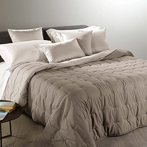 PETTI Artigiani Italiani - Dubbeltäcke, Påslakan och örngott i Microfiber, Bicolor Tortora/Celeste, 100% tillverkad i Italien