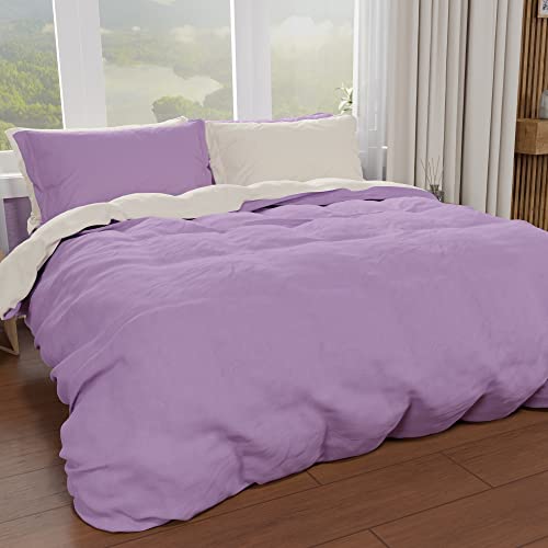 PETTI Hantverkare Italienska - Dubbeltäcke och påslakan i mikrofiber, Bicolor Lila/Panna, 100% Made in Italy