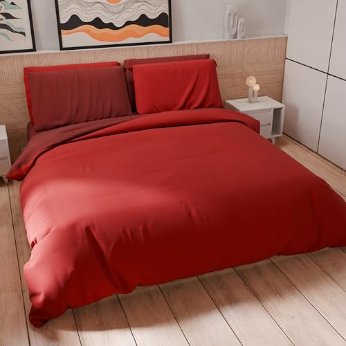 PETTI Artigiani Italiani - Dubbeltäcke, Påslakan och örngott i Microfiber, Bicolor Röd/Bordeaux, 100% Tillverkad i Italien