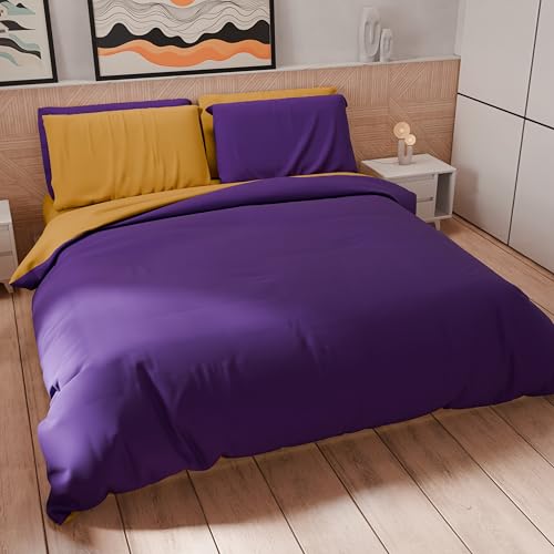 PETTI Artigiani Italiani - Dubbeltäcke, Påslakan och örngott i Microfiber, Bicolor Lila/Gul Ocra, 100% Tillverkad i Italien