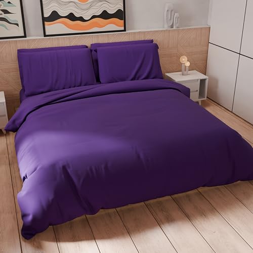 PETTI Artigiani Italiani - Dubbeltäcke, Påslakan och örngott i mikrofiber, enfärgad lila, 100% tillverkad i Italien