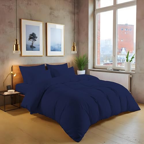 MistyMorning enkelt påslakan, mjuka sängkläder och sängkläder av högsta kvalitet, egyptisk bomull med 200 trådtäthet. (Marinblå, Dubbel)