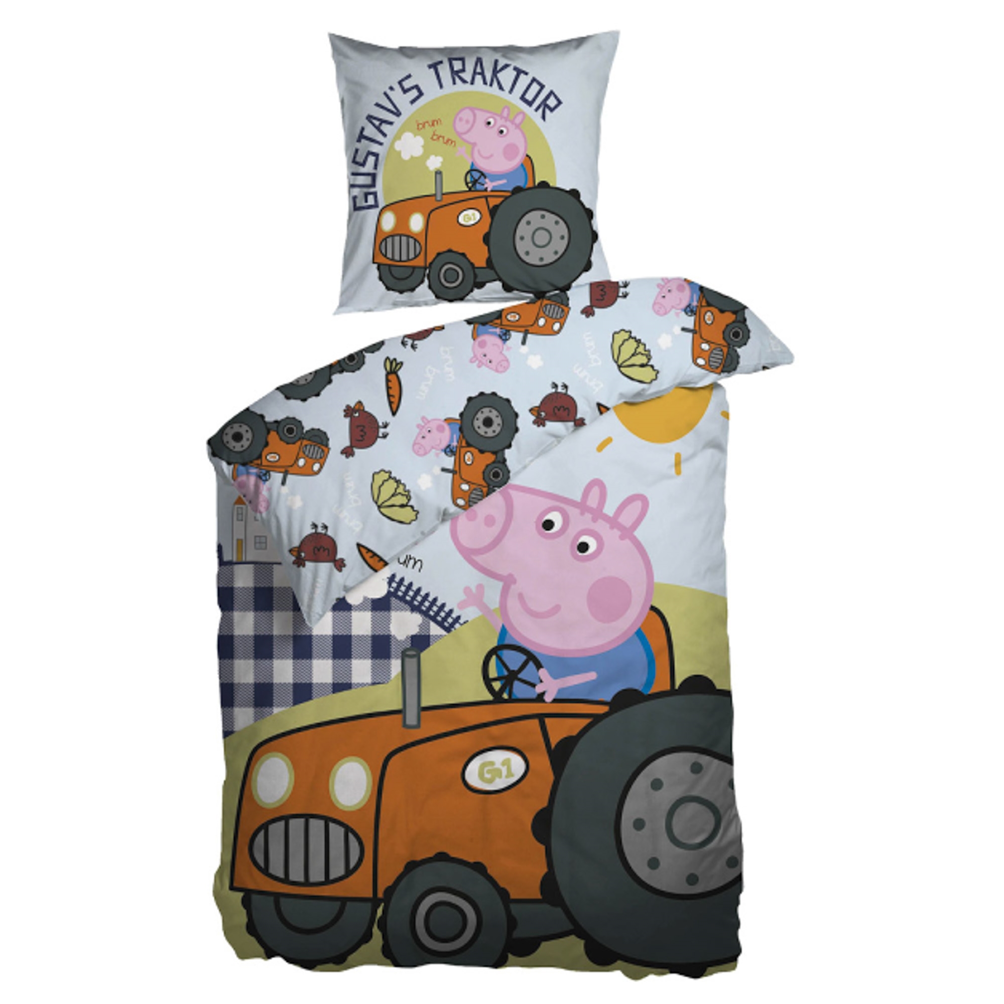 Gustav Gris påslakan - 100% ekologisk bomull - Barnpåslakanset 140x200 cm - Gustav Gris på traktor