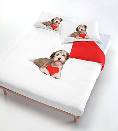 Digital cp-dig-2p påslakan, 100% bomull, dubbelsäng 504 hund hjärta röd (250 x 200 cm 2/52 x 82 cm) brun