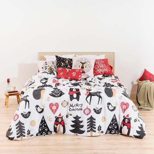 Dreams & Drapes – vintage julpåslakan – dubbel sängkläder storlek (200 x 200 cm) – julteddy fleece påslakan – röd robin sängkläder – traditionell julsäng – jul fleece sängset