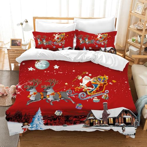 JEFFEL Julpåslakan, jultomte sängkläder set, högupplöst tryckt mönster påslakan 3-delat set, julklapp för barn tonåringar (jul A, 135 x 200 cm)