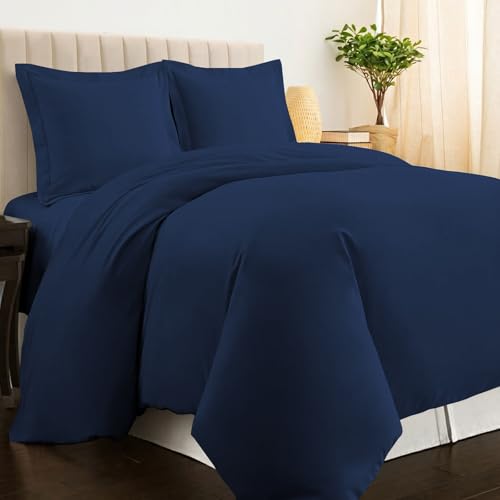 Pizuna Bomull Påslakan 200x220 marinblått, 400 trådtäthet, 100% lång lugg, kammad bomull, påslakanset med 2 örngott, 50x75 cm, mjukt påslakanset i satin 200x220 cm med dold knappstängning