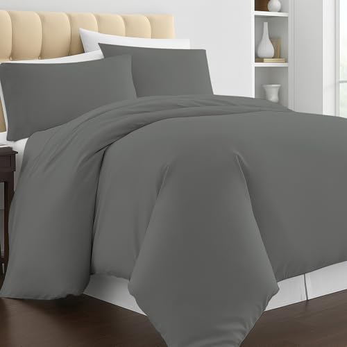 Pizuna Påslakan 220x220 svalkand Bomull med 2 örngott 50x60 cm, 400 Trådar 100% Långstaplad Kammad Bomull satinväv 3-delat påslakanset 200x220 med dold knappstängning, mörkgrå