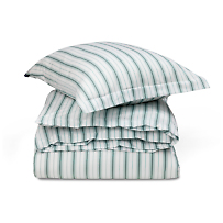 Lexington Striped Poplin påslakanset vit/eucalyptus 220x220 cm