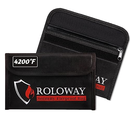 ROLOWAY Liten brandsäker väska (12,7 x 20,3 cm), icke-klåda brandsäker väska för kontanter, värdesaker, pass, valuta och nycklar (2-pack svart)