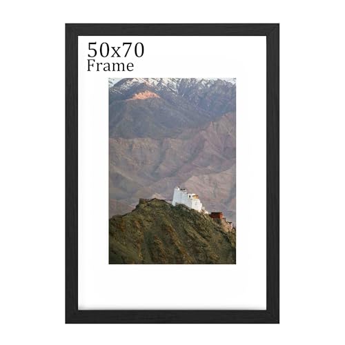 Bildram 50 x 70 cm (19,68 x 27,56 tum), bildram av trä 50 x 70 med passepartout lämplig för 50 x 70 cm bildutskrift, fotoram för väggmontering (svart)