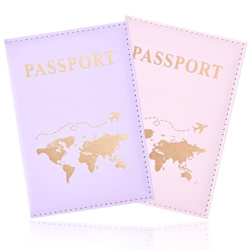 2 st passhållare, passfodral i PU-läder Passhållare Reseplånbok för pass, biljettkort, boardingkort, kreditkort, visitkort, (rosa, lila)
