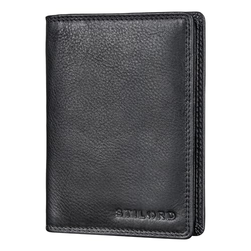 STILORD "Dima" högkvalitativt kortfodral läder män och kvinnor plånbok utan myntfack multifunktionell fordonsregistreringsmapp passfodral kreditkortsfodral med RFID-skydd, svart, M, kreditkortsfodral