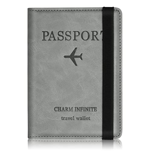 Passfodral/passhållare av läder med RFID-blockering, resepasshållare/ID-kortfodral, Grått, En storlek