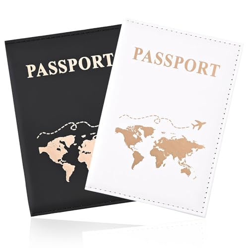 2 st passhållare, passfodral i PU-läder Passhållare Reseplånbok för pass, biljettkort, boardingkort, kreditkort, visitkort, (vit, svart)
