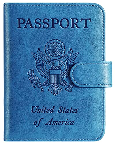 Passfodral, RFID-blockerande läder, kortfodral, resetillbehör för kvinnor och män, BLÅ, Small, Klassisk