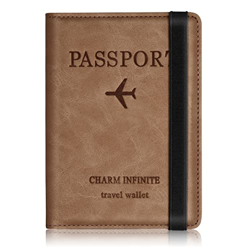 VULKIT Passfodral i läder med Airtag-hållare resedokumenthållare för män eller kvinnor RFID-blockerande passhållare, espresso