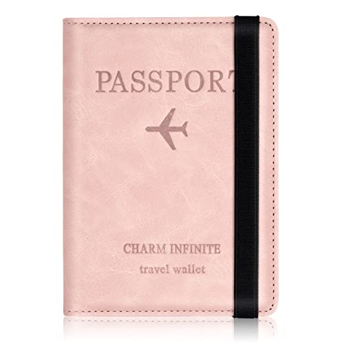 Passfodral/passhållare av läder med RFID-blockering, resepasshållare/ID-kortfodral, Rosa, En storlek