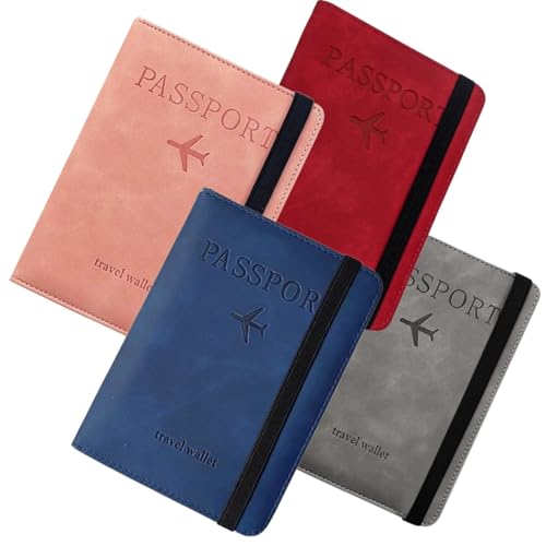 PAGAMADU 4u passfodral, passhållare, resedokumenthållare, resepassfodral, 4 färger, RFID- och NFC-blockerande passfodral, PU-läder, Flerfärgad, pequeño, Samtida