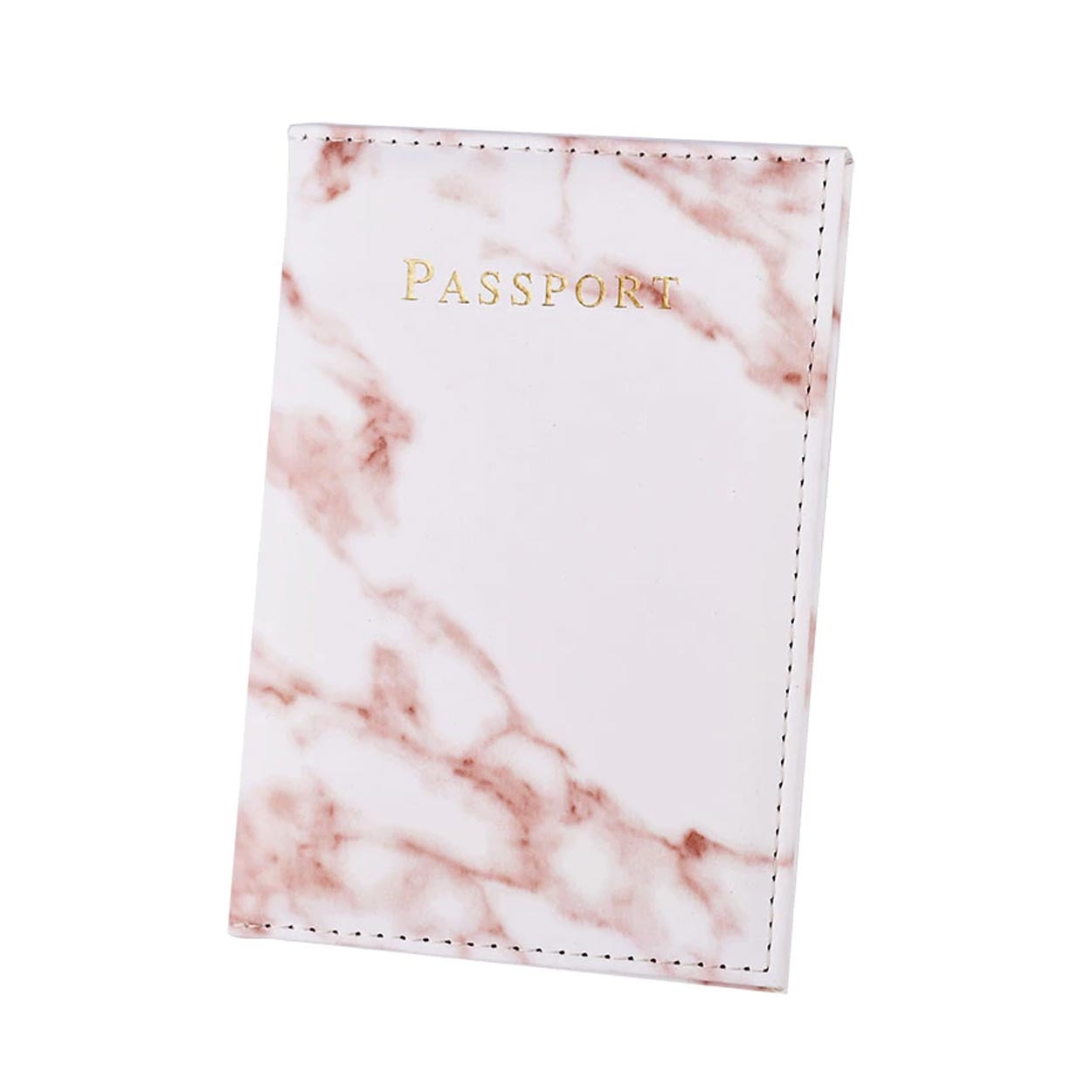 Passfodral Passhållare Rosa Marmor Skinn Läder Guld
