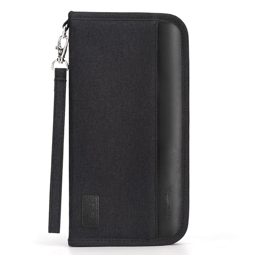 Looxmeer Passväska Plånböcker för Familjeresa, Resa Passhållare med RFID-blockerande för Män och Kvinnor, Bärbart Resa Plånböcker Stor Kapacitet för Bankkort ID-kort Flygbiljetter Penna, Svart