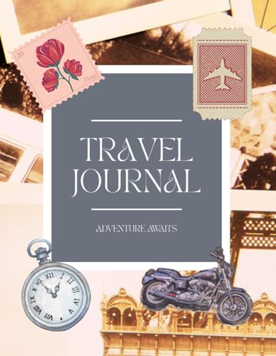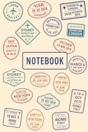 65-Page Travel Journal – Colourful Vintage Travel-Inspired Cover with Blank Pages and Passport Stamp Graphics