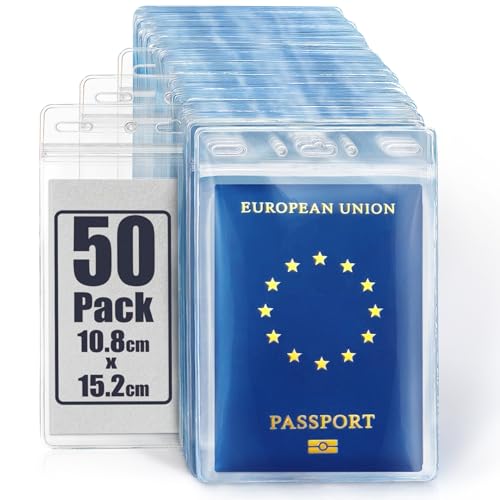 Mifflin Passport & Card Holders (Clear, 10,2x15,2 cm, 50 Pack) Extra Large (XXL) ID Name Badge Holder, Waterproof Vertical Plastic Card Holders