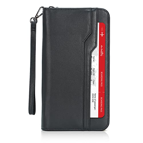 MoKo Passport Holder Family, RFID Passport Wallet for Men and Women, Travel Passport Holder with Multiple Compartments, Travel Document Organzier for Cards, ID, Tickets, Keys, Black