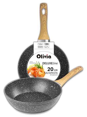 IPEA Non-stick stekpanna pasta- och stekpanna - induktion och gasspis - 22 cm - non-stick stekpanna i aluminium med trähandtag hoppa över pasta, steka grönsaker, risotto