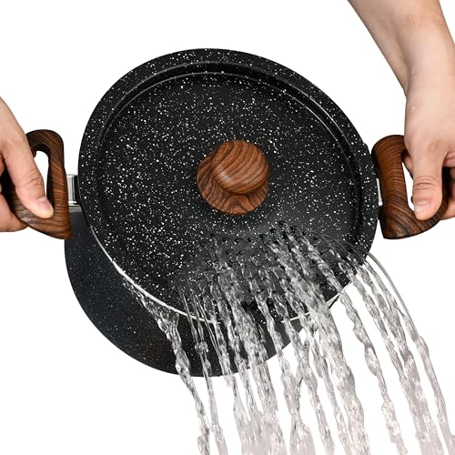 NutriChef 5QT Pastakastrull med Lock och Pastafilter | Non-stick Kastrull | Låsande Lock, Värmebeständiga Handtag | Jämn Värmefördelning | Lätt att Rengöra | Svart Marmor